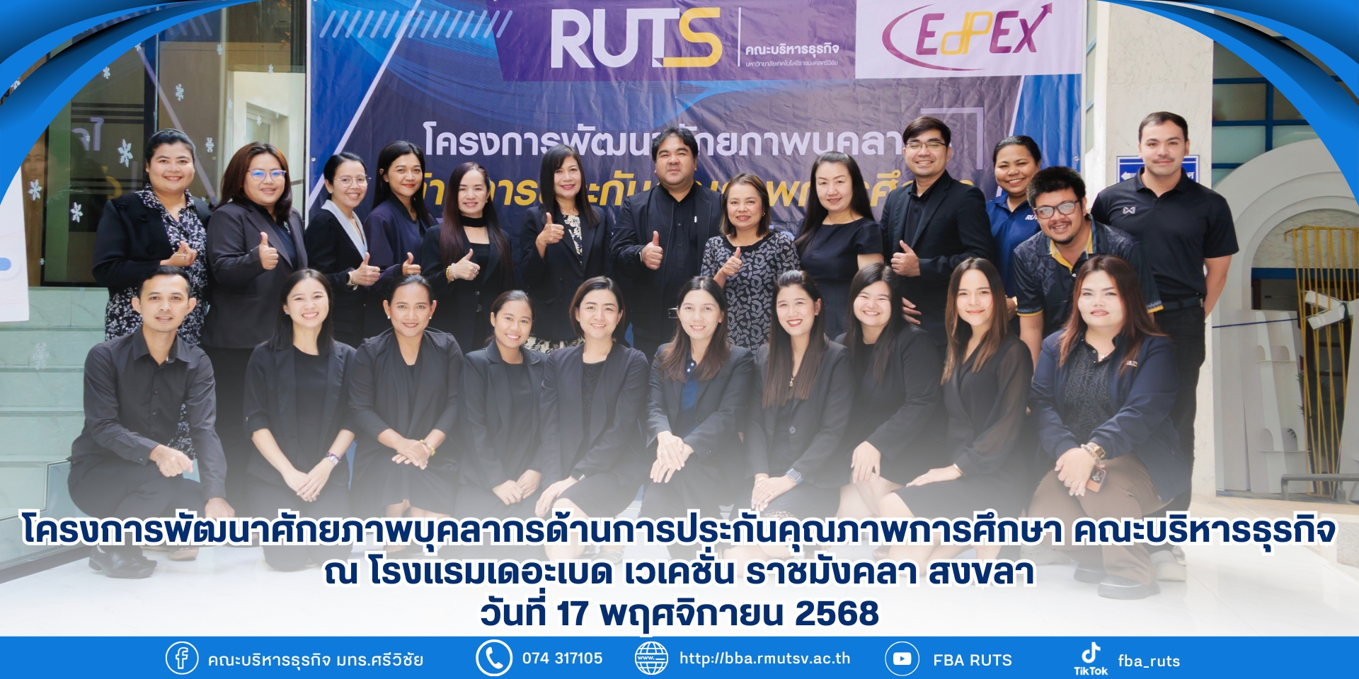 คณะบริหารธุรกิจ มหาวิทยาลัยเทคโนโลยีราชมงคลศรีวิชัย ได้ดำเนินการจัดโครงการพัฒนาศักยภาพบุคลากรด้านการประกันคุณภาพการศึกษา