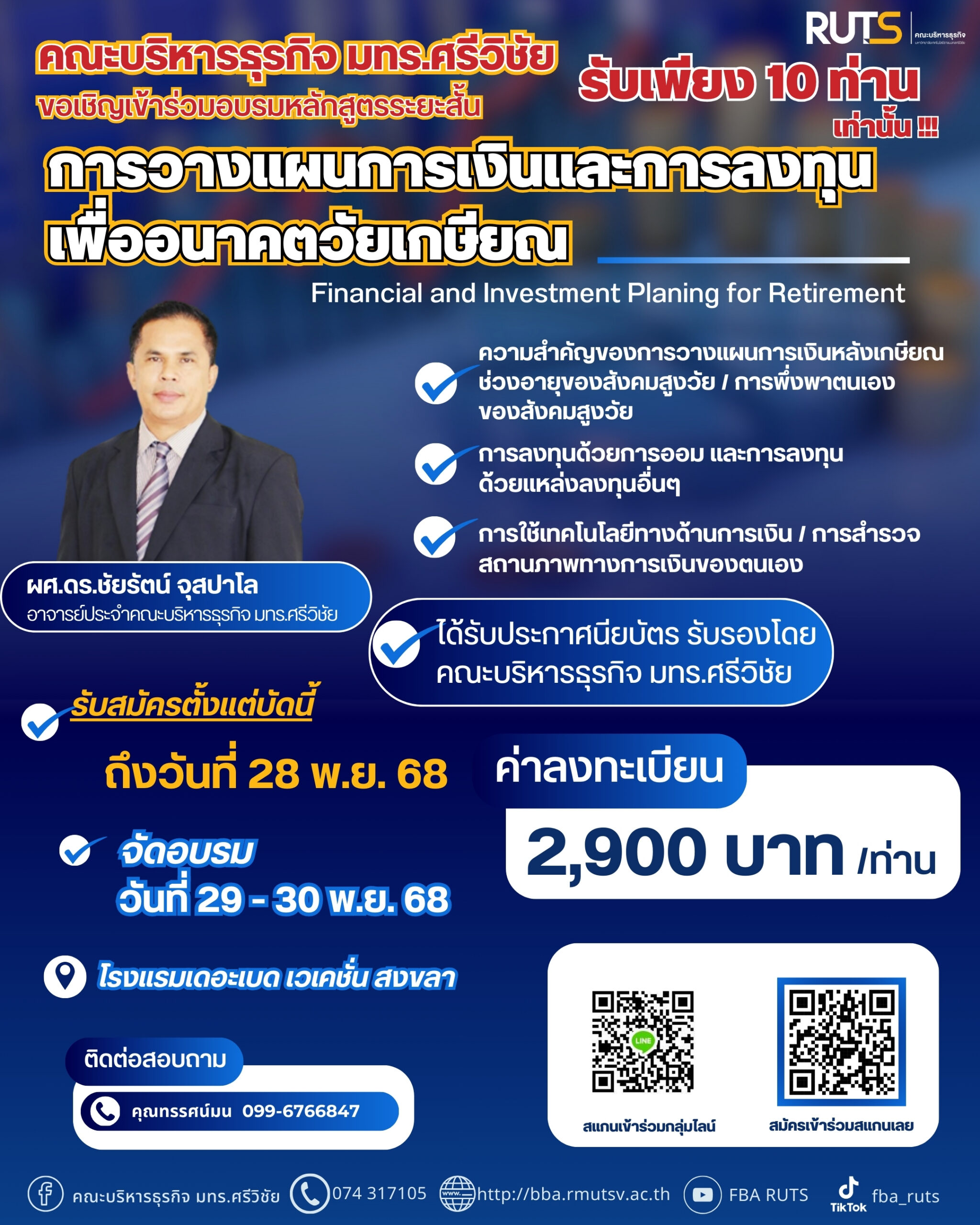 ข่าวประชาสัมพันธ์ คณะบริหารธุรกิจ มทร.ศรีวิชัย แปรอักษร เป็นสัญลักษณ์ “โบว์ไว้อาลัยพฤศจิกายน 5, 2025พฤศจิกายน 7, 2025